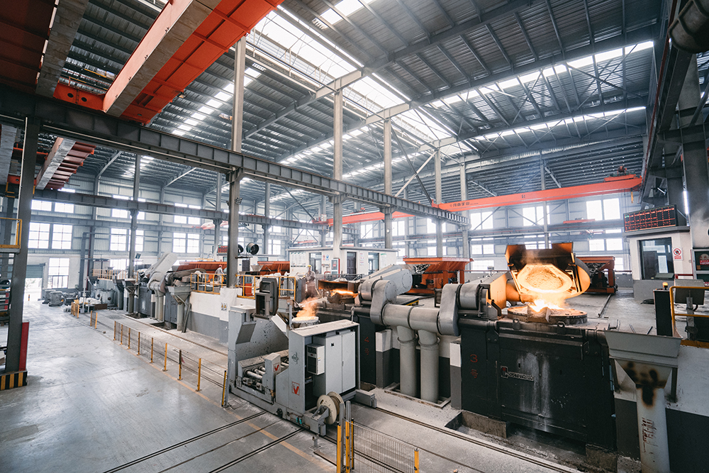 公司一期工程配置三套美国应达熔化电炉。二套一拖二(